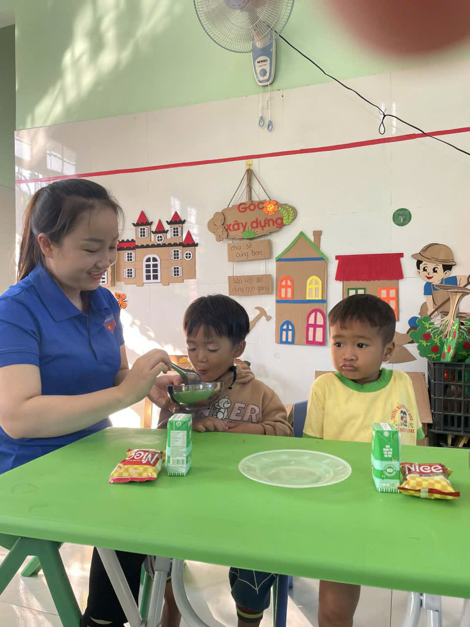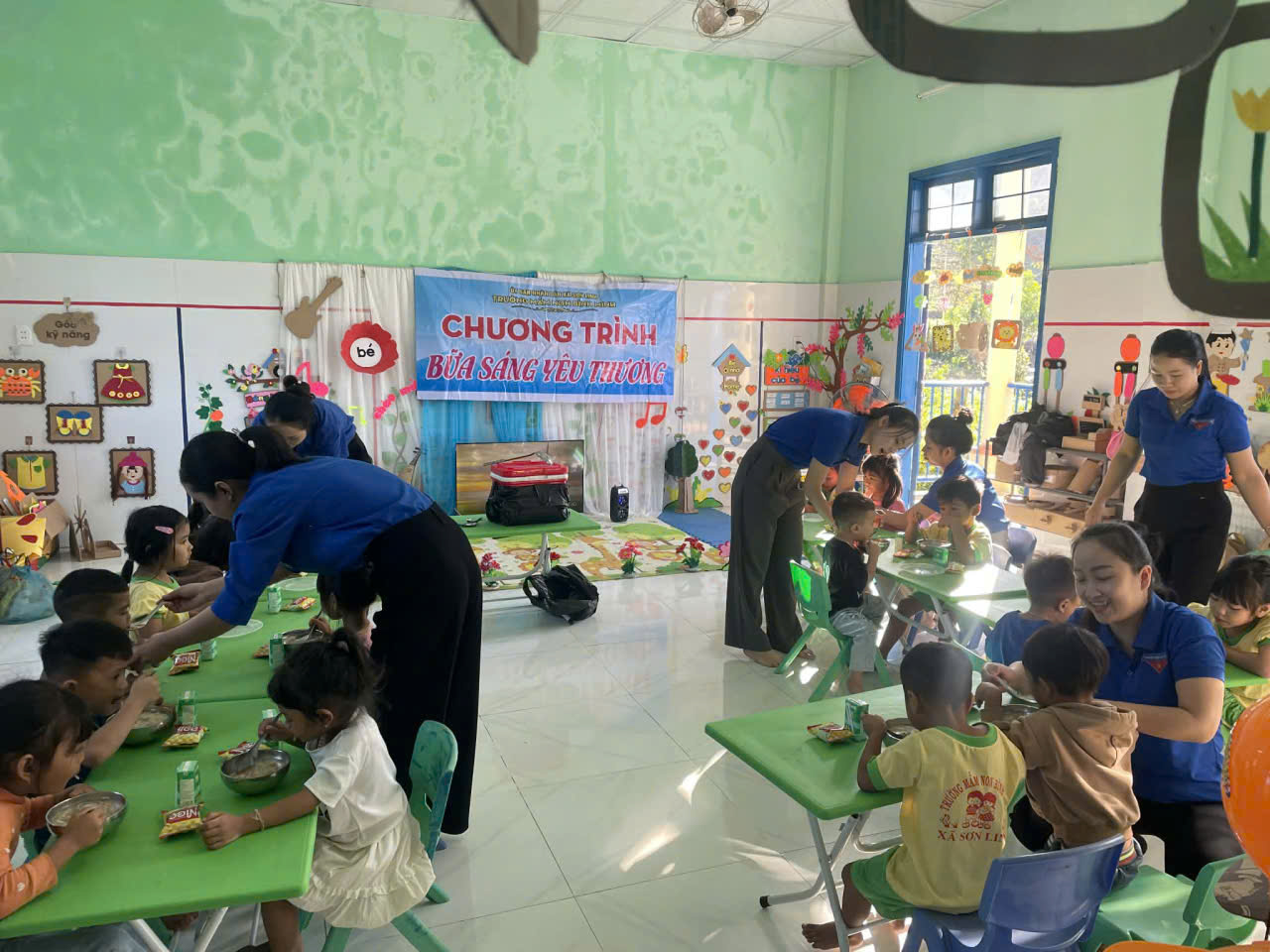Nhận thấy nhiều em nhỏ ở vùng cao đến lớp trong tình trạng đói bụng, thiếu bữa sáng, các cô giáo mầm non Bình Minh Xã Sơn Linh đã cùng nhau phát động chương trình “Bữa sáng yêu thương”. Mỗi sáng, trước khi đón trẻ, các cô lại tất bật chuẩn bị những phần ăn đơn giản mà ấm lòng còn bốc hơi ấm. Không chỉ là một bữa ăn, đó còn là hơi ấm của tình người, là niềm động viên giúp các em có thêm năng lượng để học tập và vui chơi. Nhìn những khuôn mặt nhỏ nhoi ánh lên niềm vui khi được ăn sáng đầy đủ, các cô giáo như quên đi bao vất vả, giá lạnh.