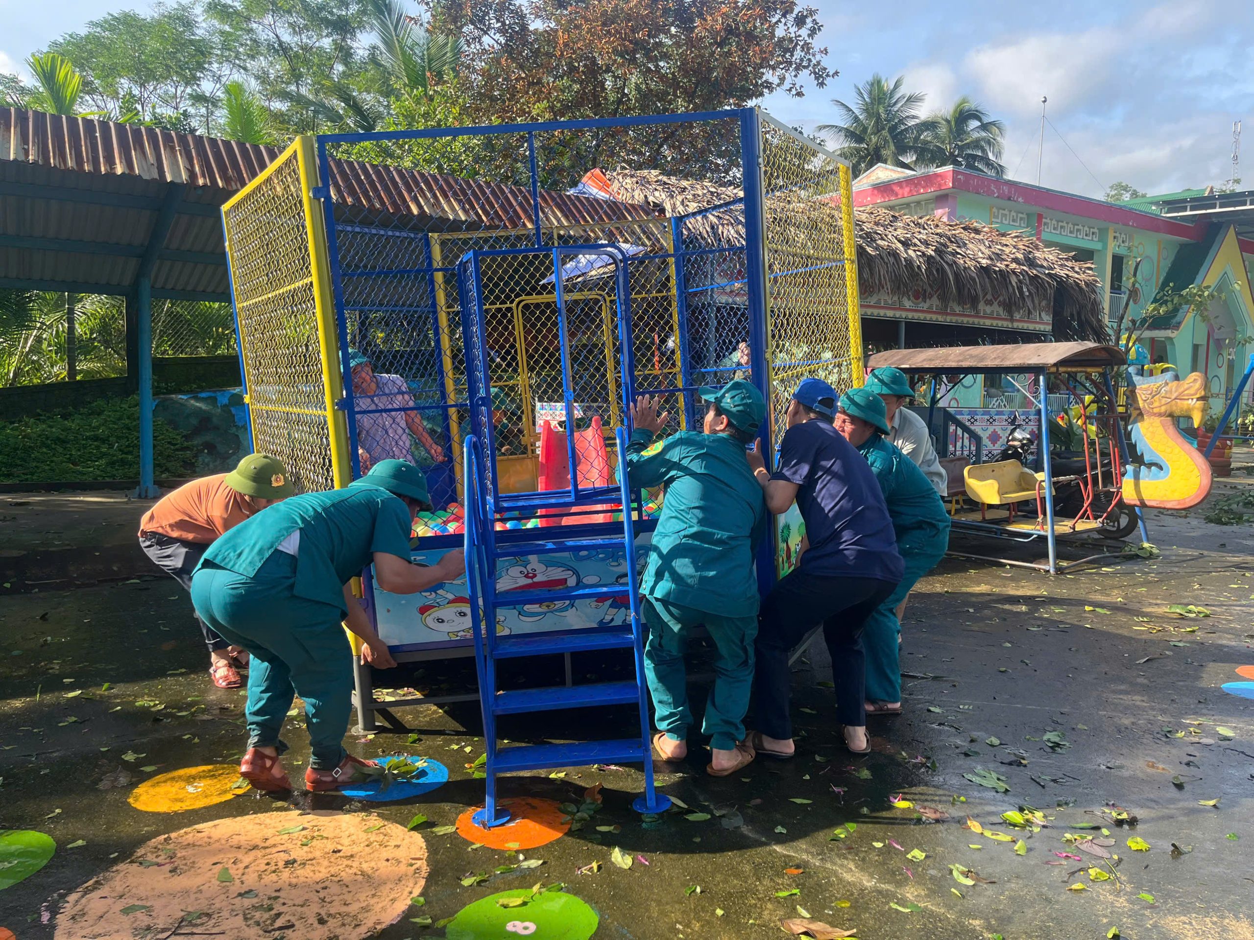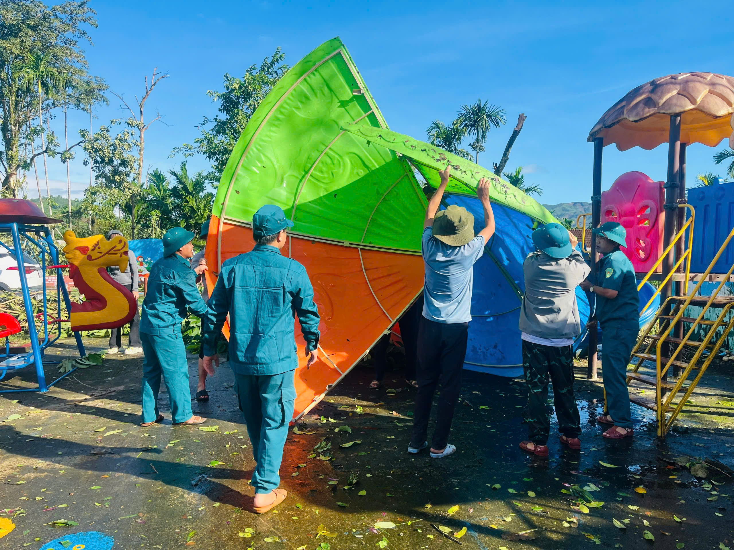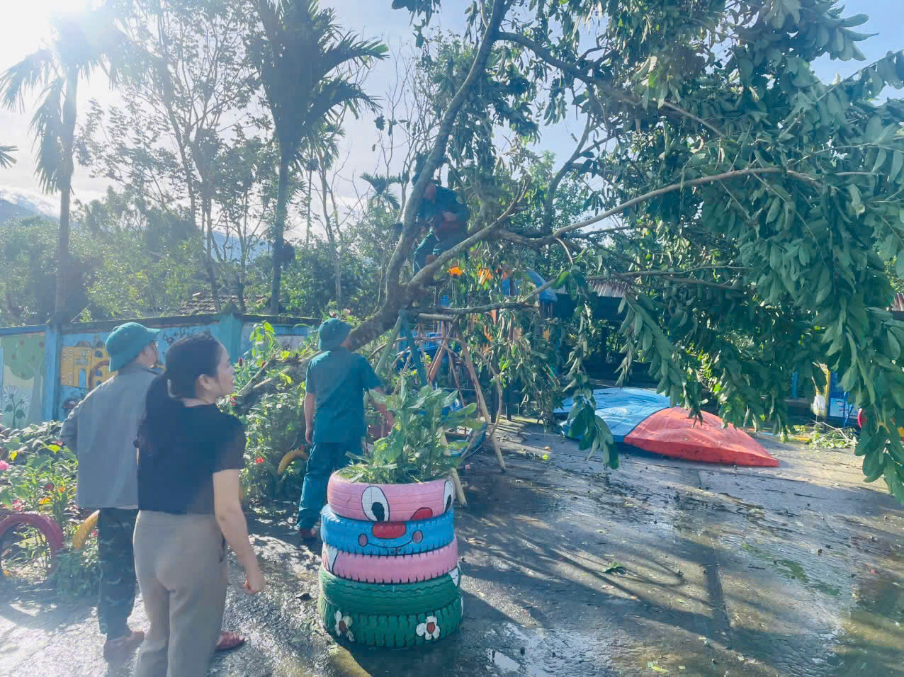 Sau khi cơn bão số 13 đi qua, để lại nhiều thiệt hại cho cơ sở vật chất và cảnh quan trường học, tập thể cán bộ, giáo viên, nhân viên trường mầm non Bình Minh đã nhanh chóng bắt tay vào công tác khắc phục hậu quả, ổn định môi trường học tập cho trẻ.