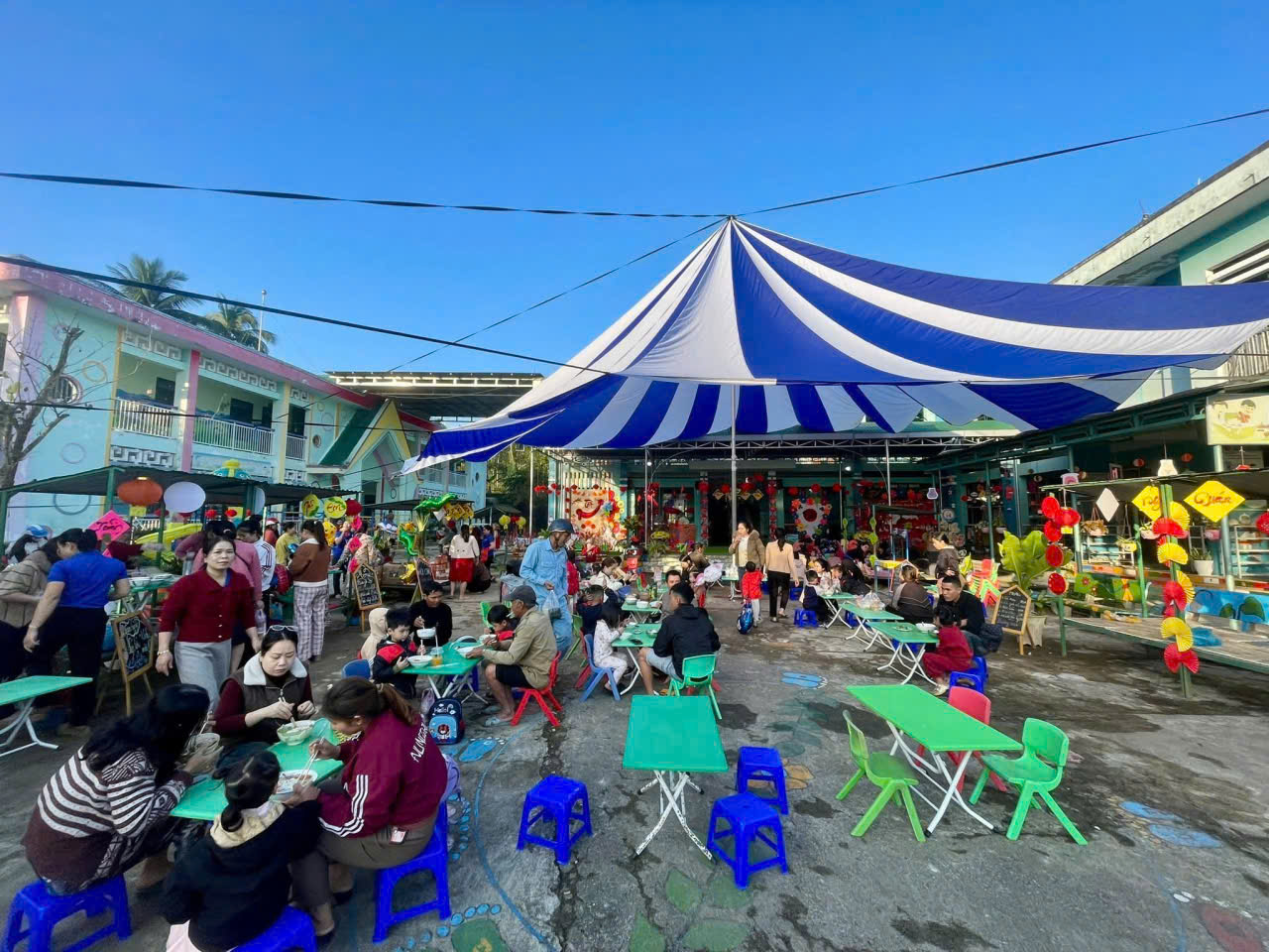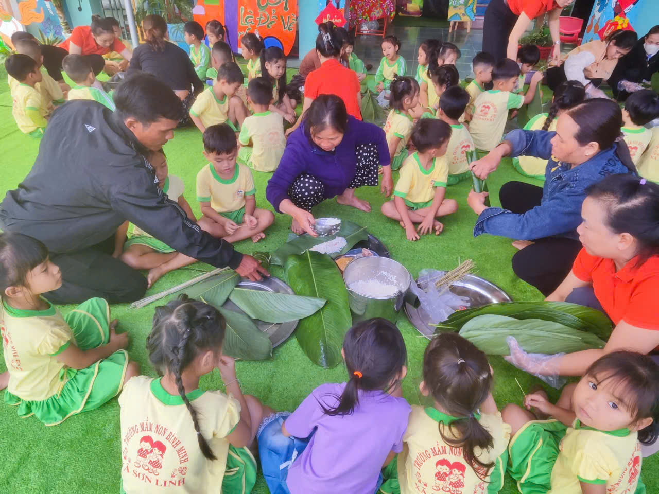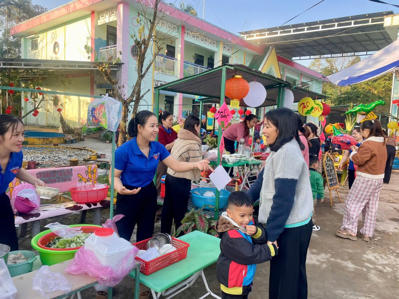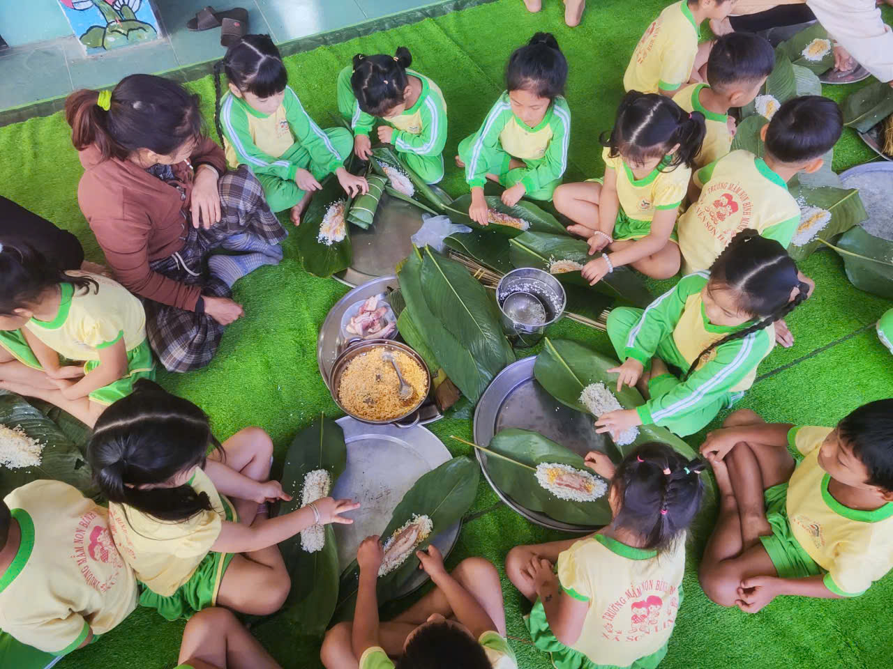 Tại các gian hàng được trang trí rực rỡ, các bé mầm non không chỉ là người tham quan mà trực tiếp tham gia vào quá trình mua bán, trải nghiệm các trò chơi dân gian,, hay gói bánh chưng. Những hoạt động này giúp trẻ phát triển kỹ năng giao tiếp, sự nhanh nhẹn, tư duy khám phá thế giới xung quanh và sự tự tin.