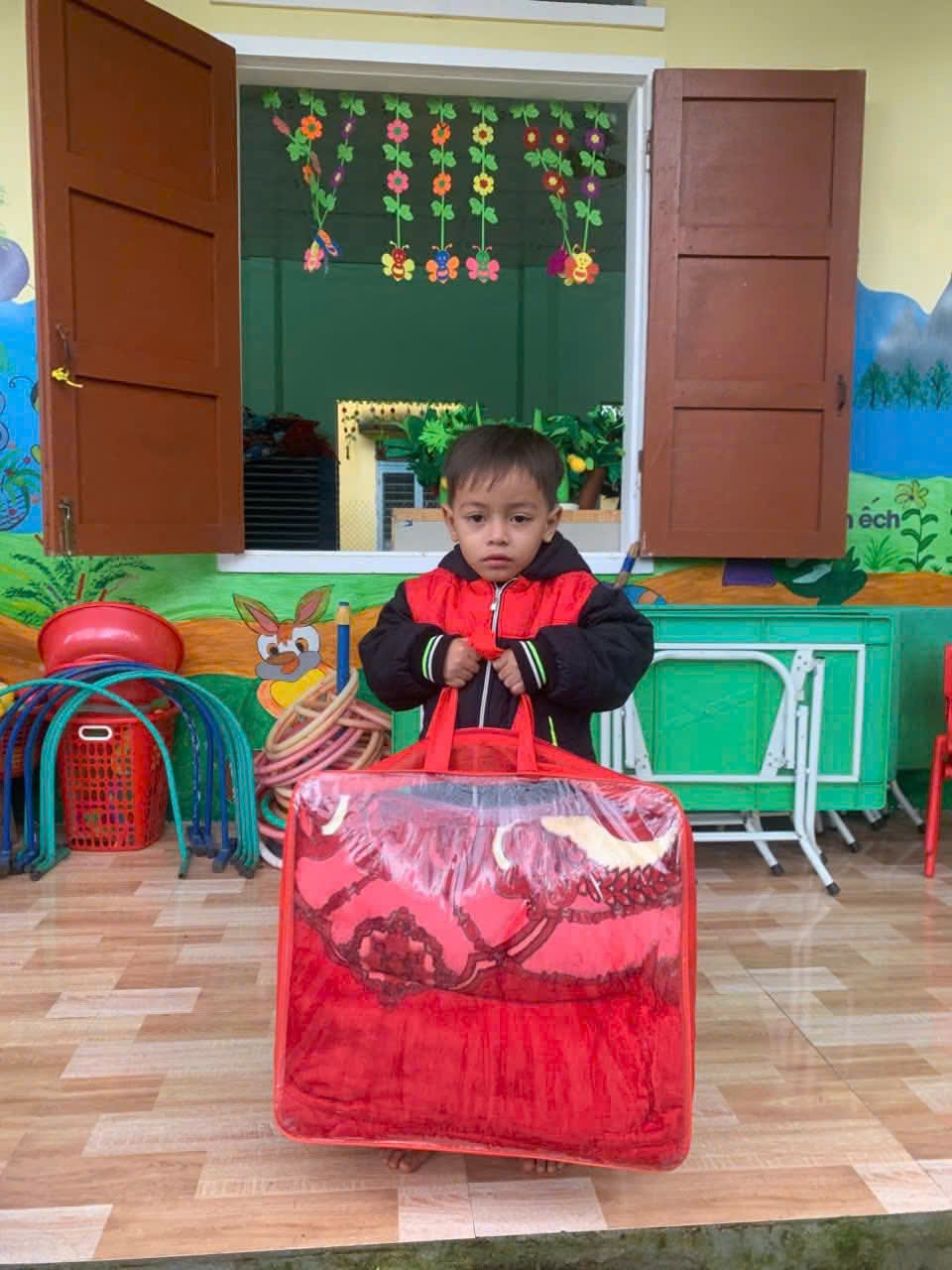 Thay mặt Ban giám hiệu cùng toàn thể các cô giáo và các bé trường Mầm non Bình Minh, chúng tôi xin gửi lời cảm ơn chân thành và sâu sắc nhất tới Quý mạnh thường quân đã dành tặng những chiếc áo ấm và mền của cô Hạnh Johnny đầy yêu thương cho các cháu.